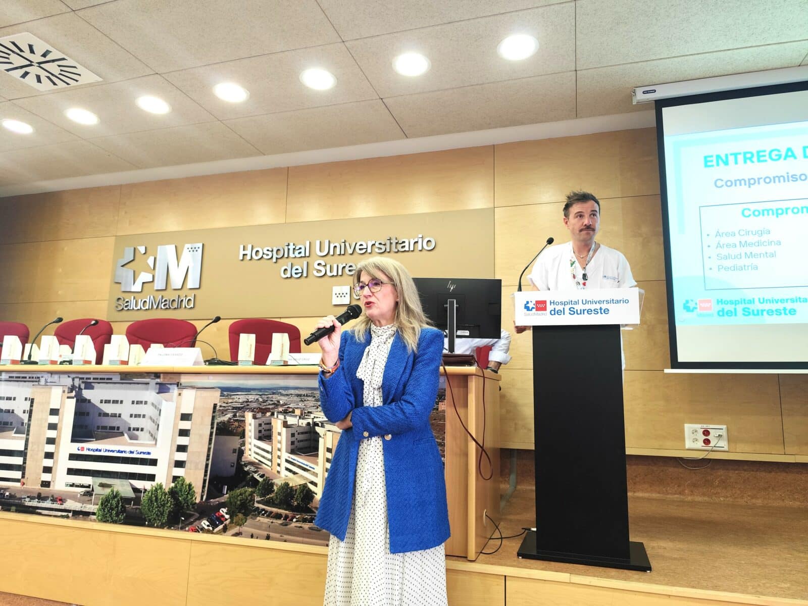David París también explicó en sus palabras de agradecimiento que la colaboración con el Hospital del Sureste comenzó “en los días más crudos de la pandemia. Cuando el Hospital del Sureste nos pidió ayuda para localizar algo tan básico -y tan escaso en aquel momento- como camas disponibles para las personas afectadas por el virus”. Espacios para que fueran atendidas con humanidad, con dignidad”.