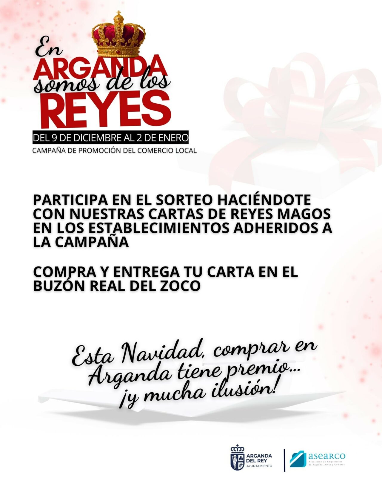 Los premios serán fantásticos juguetes. Los ganadores podrán recoger sus premios durante los propios sorteos en el ZOCO Arganda o, posteriormente, en la Concejalía de Promoción Económica hasta el 31 de enero de 2026.