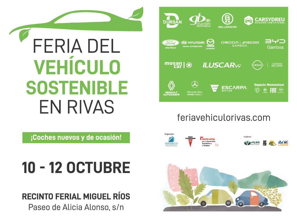Alrededor de cuatrocientos cincuenta coches, más de veinte marcas, dieciséis concesionarios y todas las tecnologías de bajas emisiones. Estas son las coordenadas esenciales que conducirán a la Feria del Vehículo Sostenible de Rivas que arrancará este fin de semana. Se celebrará en el Recinto Ferial Miguel Ríos (Paseo Alicia Alonso s/n) y la entrada es gratuita. El evento ha sido diseñado para ofrecer, en medio de un ambiente festivo, alicientes para las personas amantes del motor, pero también planes de ocio para toda la familia.