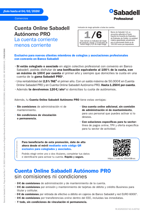 Si quieres comenzar a beneficiarte de las ventajas que ofrece la Cuenta Online Sabadell Autónomos PRO, clica sobre el enlace: